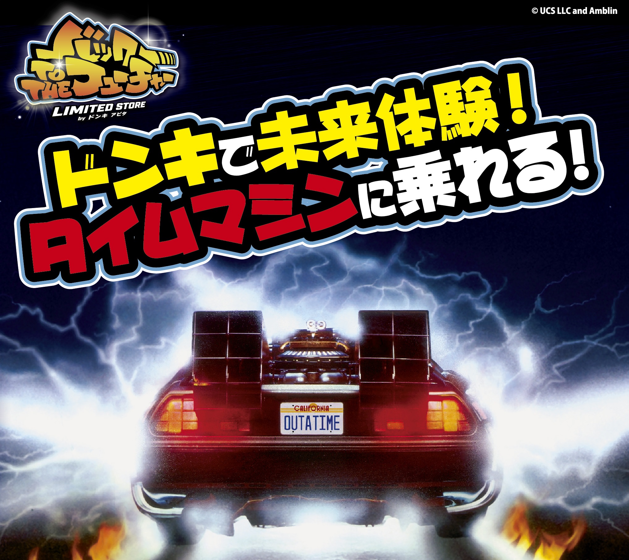 劇中仕様の実物大タイムマシン(レプリカ) を展示、条件達成で試乗も可能です。
