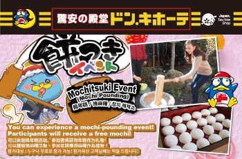 You can experience a mochi-pounding event! Participants will receive a free mochi!