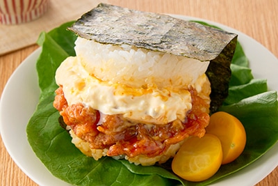 “具がない部分” が許せないおにぎり! はみだしすぎィなチキン南蛮(た〜っぷりタルタルソース) -