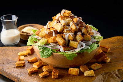 シャキシャキよりもザックザク食感 目いっぱいにザクザクを味わいたくて気が付けばシーザーサラダがみえなくなった!?爆盛りクルトンサラダ