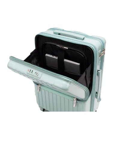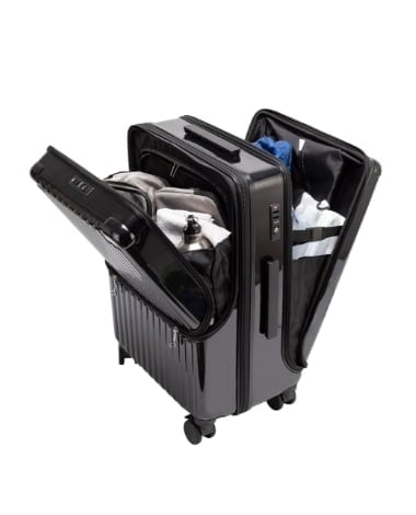 狭い部屋でも机の上でも荷作りができるフロントドアオープン式のキャリー。省スペースで荷物の出し入れがしやすいです。内側には型崩れを防ぐプレート入りで、さらに幅を拡張できるので容量がグーンとアップします。8輪キャスター装備で安定感もバツグン。