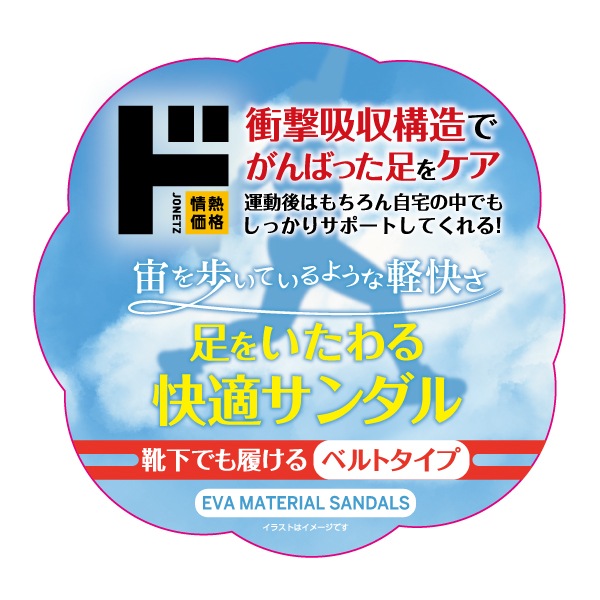 運動の後はもちろん、自宅の中でもしっかりサポートしてくれる、足をいたわる快適サンダルです。