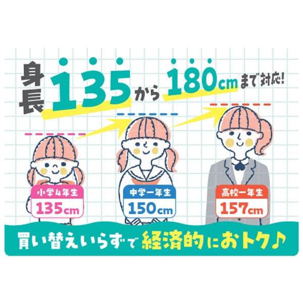 いろんな世代のいろんな身長に対応するので、買い替えいらずで長く乗れて経済的におトクです♪