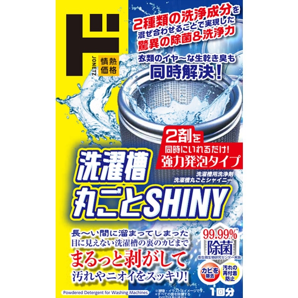 2剤を同時に洗濯槽にいれるだけの強力発泡タイプの洗濯槽用洗浄剤、洗濯槽丸ごとシャイニーです!
