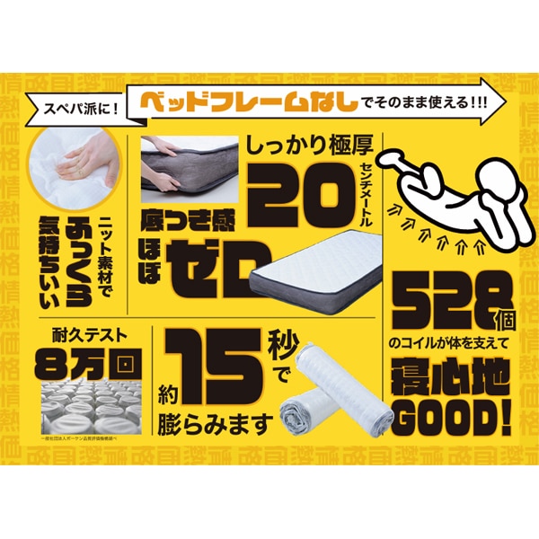 528個のコイルが体を支えて寝心地GOOD!ふっくらニット素材、極厚20cm、寝返り寿命10年分!
