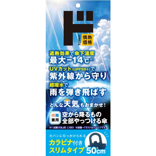 空から降るものを全部やっつける傘 カラビナ付きスリムタイプ 50cm