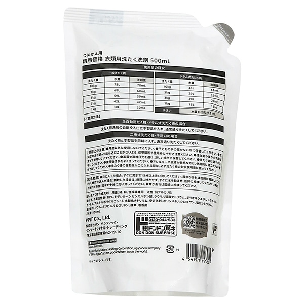 機能も価格もシンプルな衣類用洗たく洗剤 500ml