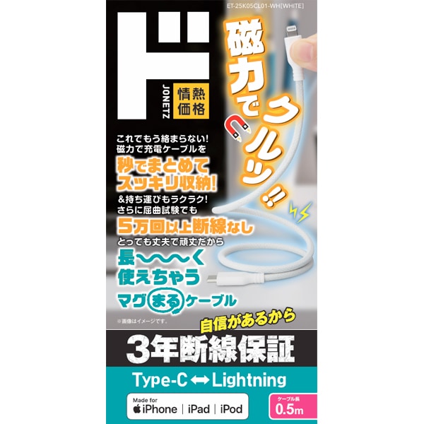 3年断線保証 Type-C to Lightning マグまるケーブル