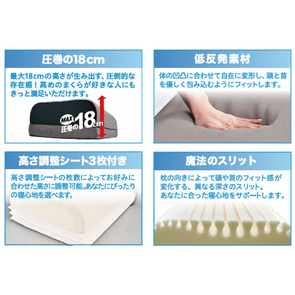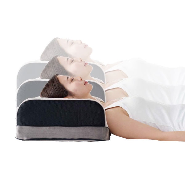 横向き寝も仰向け寝も爽快に、まるでオーダーメイドみたいな理想的な高さにしずむ枕です。