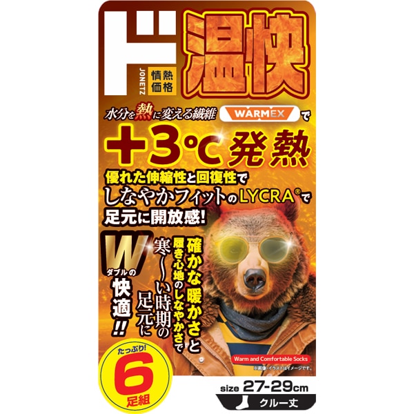 水分を熱に変える吸湿発熱繊維WARMEX採用で+3℃発熱!