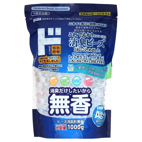 消臭だけしたいから無香のビーズ消臭剤、とってもお得な詰め替え用大容量1000gです!