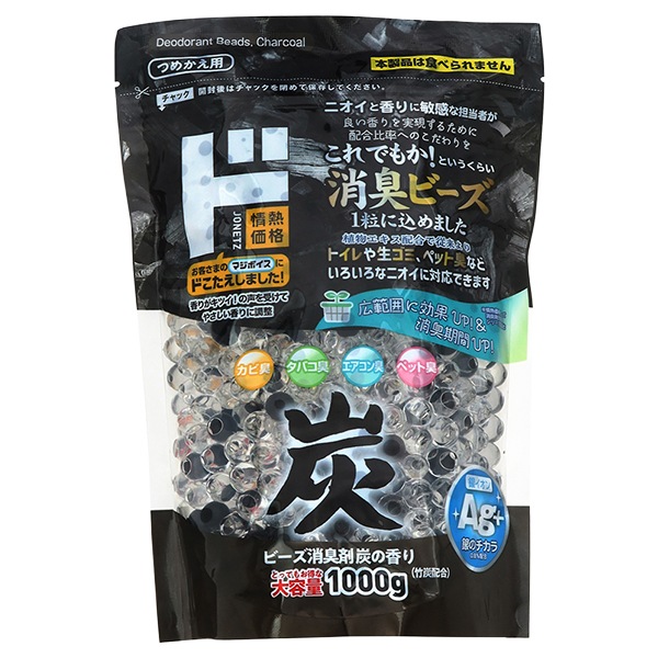 竹炭配合の炭の香りのビーズ消臭剤、とってもお得な詰め替え用大容量1000gです!