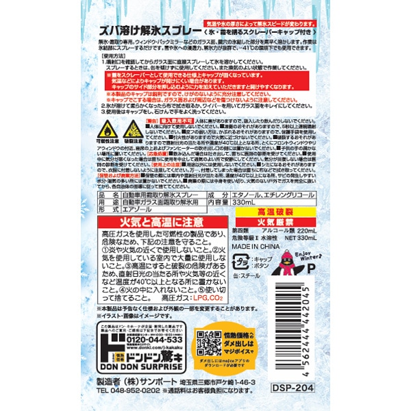 パワフル解氷!再凍結の心配無用なズバ溶けド解氷スプレー!