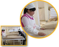 プライベートブランド「情熱価格」の各商品は、安心・安全を第一に考え、「お客様の声」を忠実に具現化するために、ドン・キホーテグループ自ら企画・生産・販売までを行うシステムで作られています。例えば「情熱価格」のバスタオルは、品質管理の厳格な自主規格に基づき、中国の生産工場において、以下のような製造工程を経て、お客様のお手元に届いています。