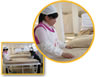 2)生地のほつれや穴あきなどがないか、ひとつひとつ、目視でチェック。
