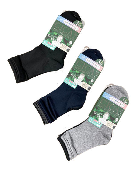 なめらか感じるソックススキンケアでも知られている「CICA(シカ)」(※ツボクサエキス)加工を施した3足組のソックス。