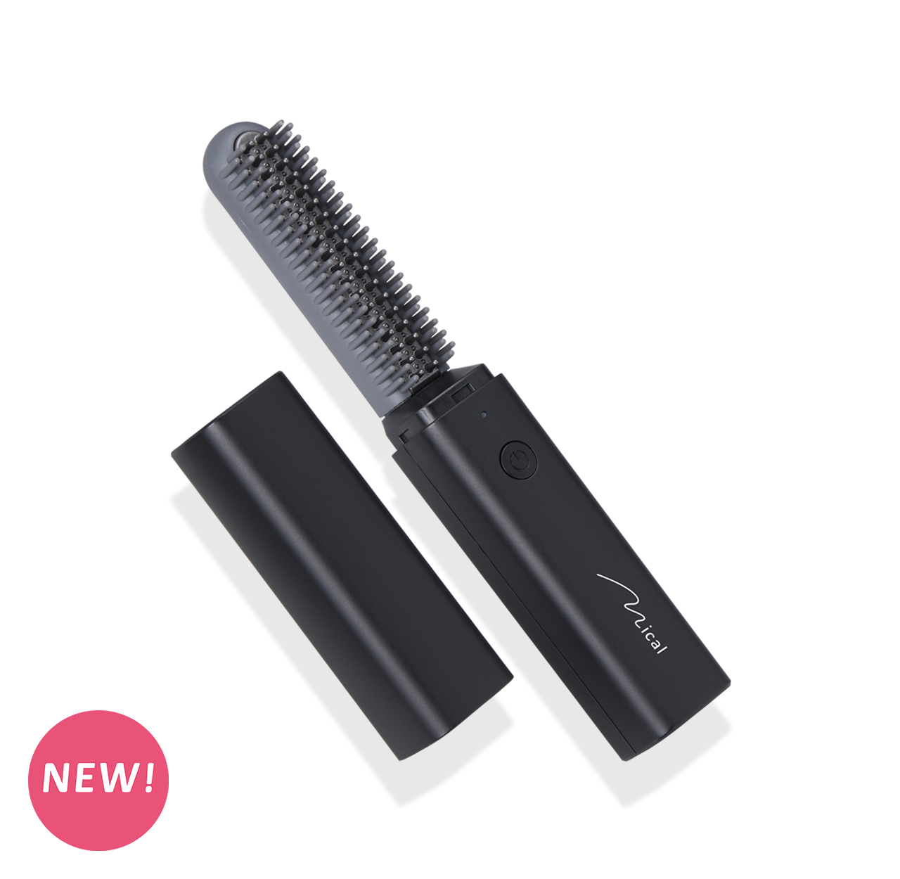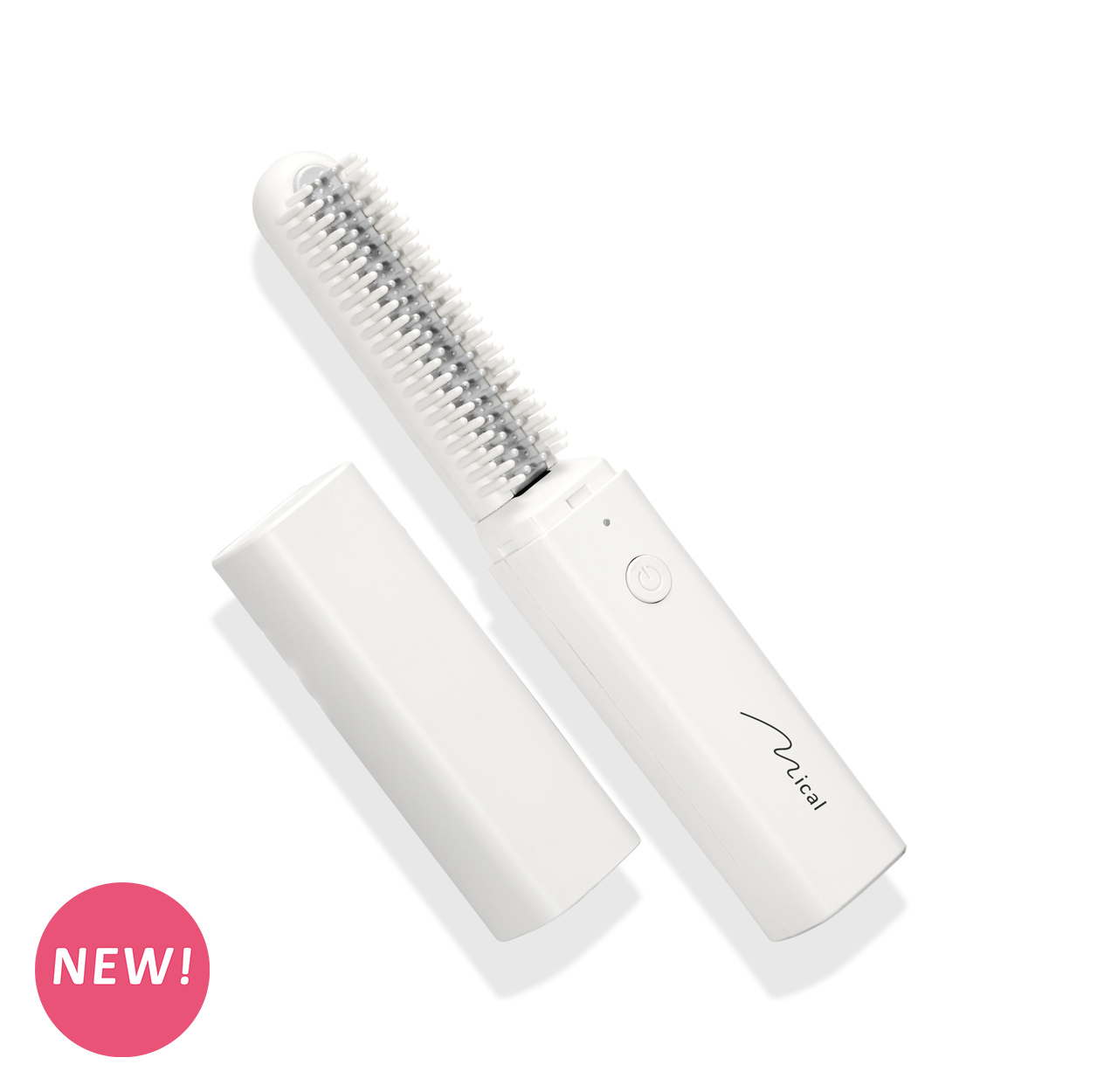 ブラシ型のヘアアイロンで前髪や顔まわりの⽑を整えて理想のスタイルを叶えます。