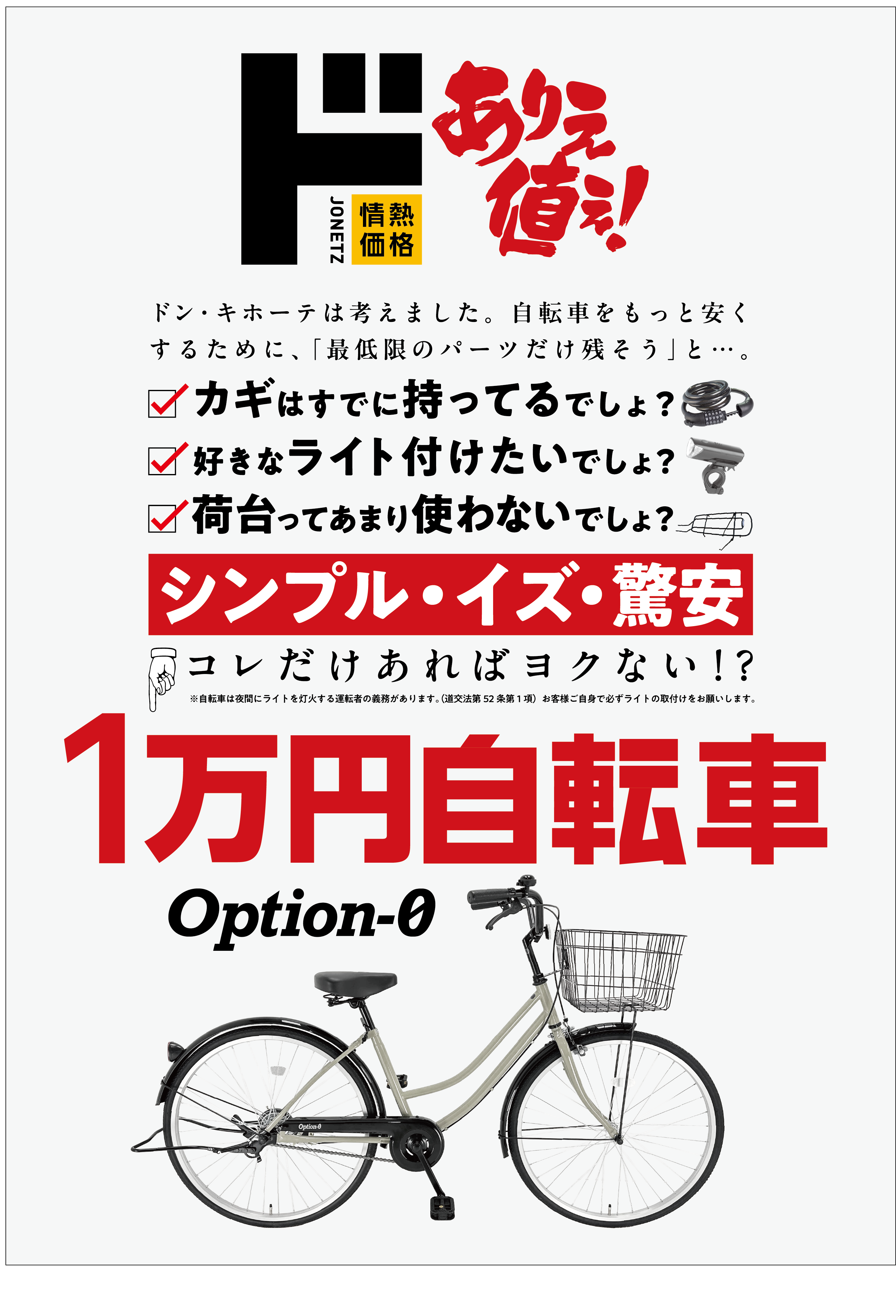 ※自転車には灯火義務があります。お手持ちのライトまたはライトを購入し取付をお願いします。