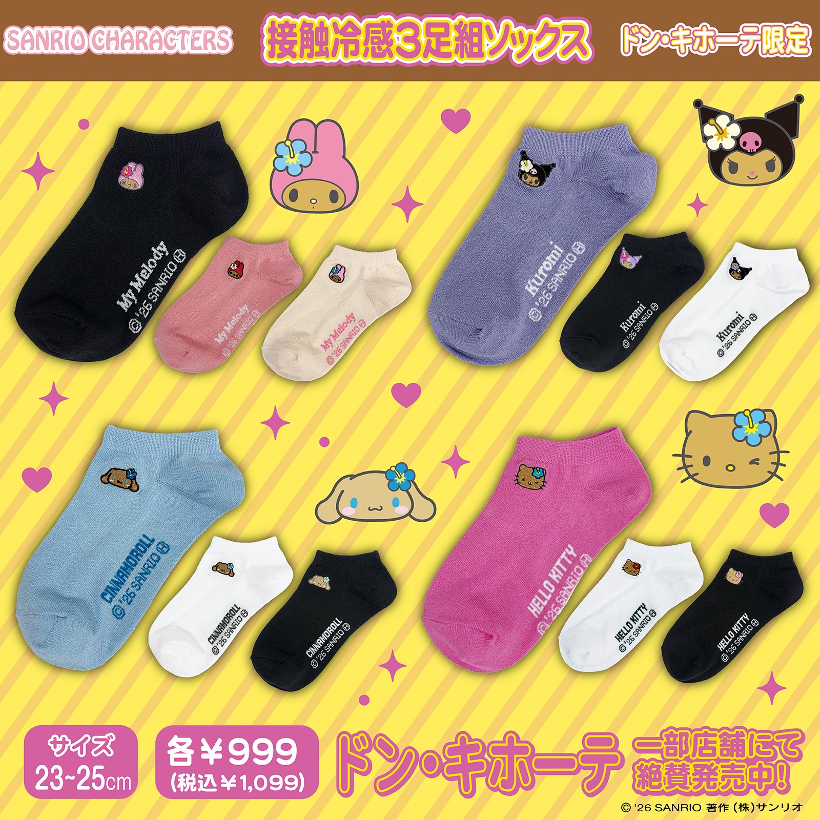 夏のサンリオアイテムとして接触冷感3足組ソックスも新登場です。