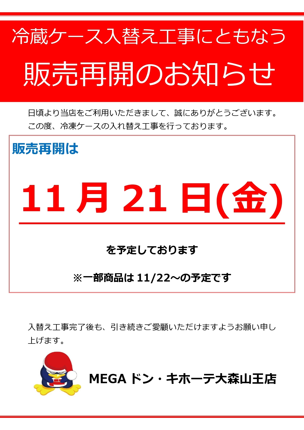 MEGAドン・キホーテ大森山王店をご利用いただきまして誠にありがとうございます。